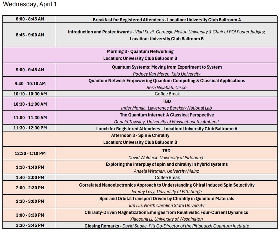 PQI Best Poster Awards Students presenting in hopes of a Best Poster Award must attend breakfast on April 1 for the announcement. |