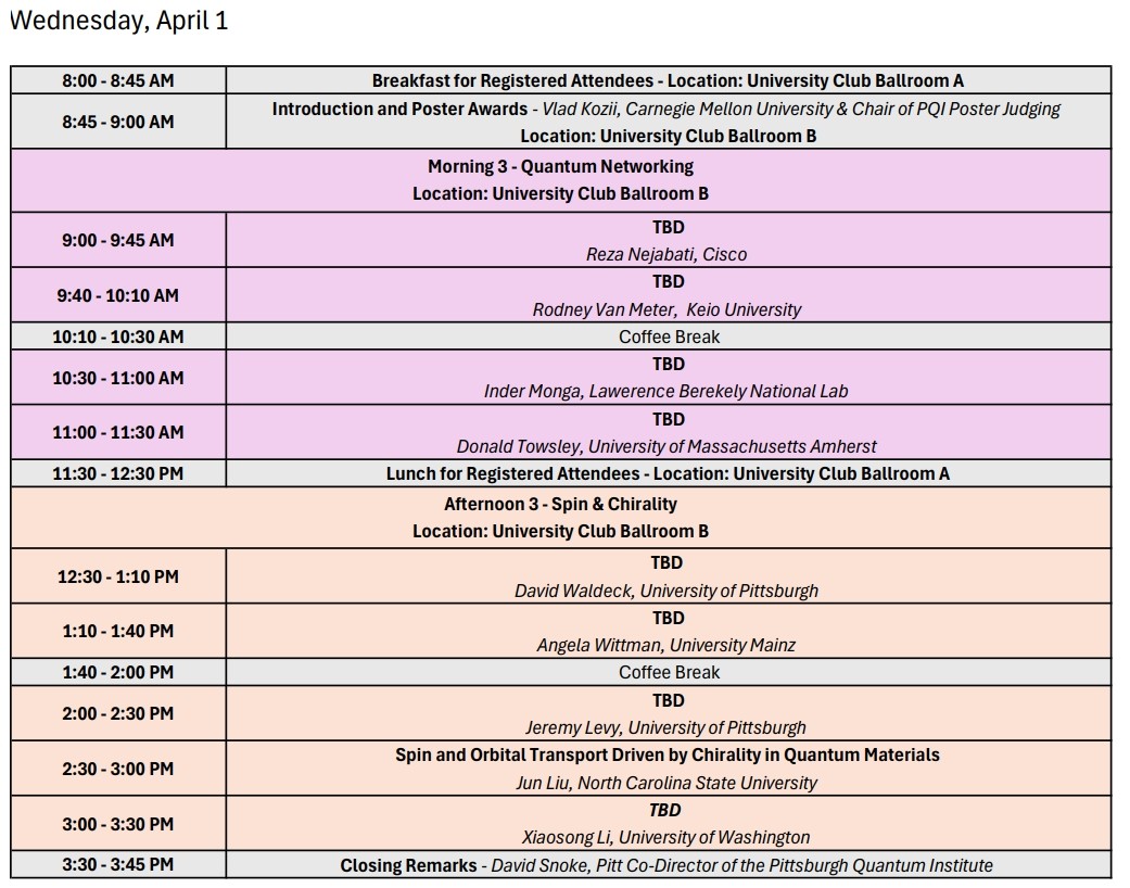 PQI Best Poster Awards Students presenting in hopes of a Best Poster Award must attend breakfast on April 1 for the announcement. |